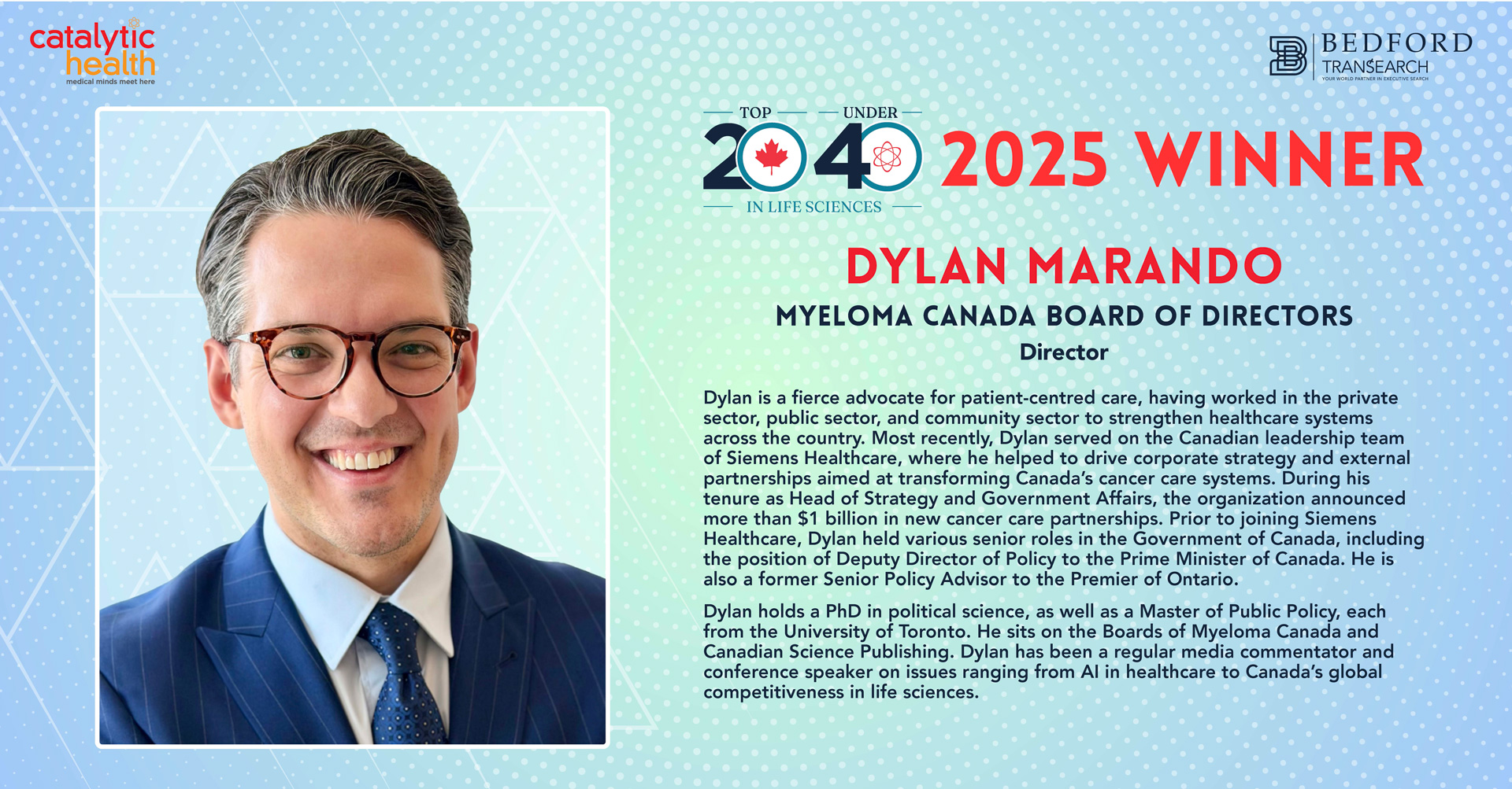 The Canadian Life Sciences Top 20 Under 40 Awards recognize emerging leaders making a meaningful impact across the life sciences industry. Open to professionals under the age of 40, the program highlights individuals driving innovation, leadership, and progress in the field.